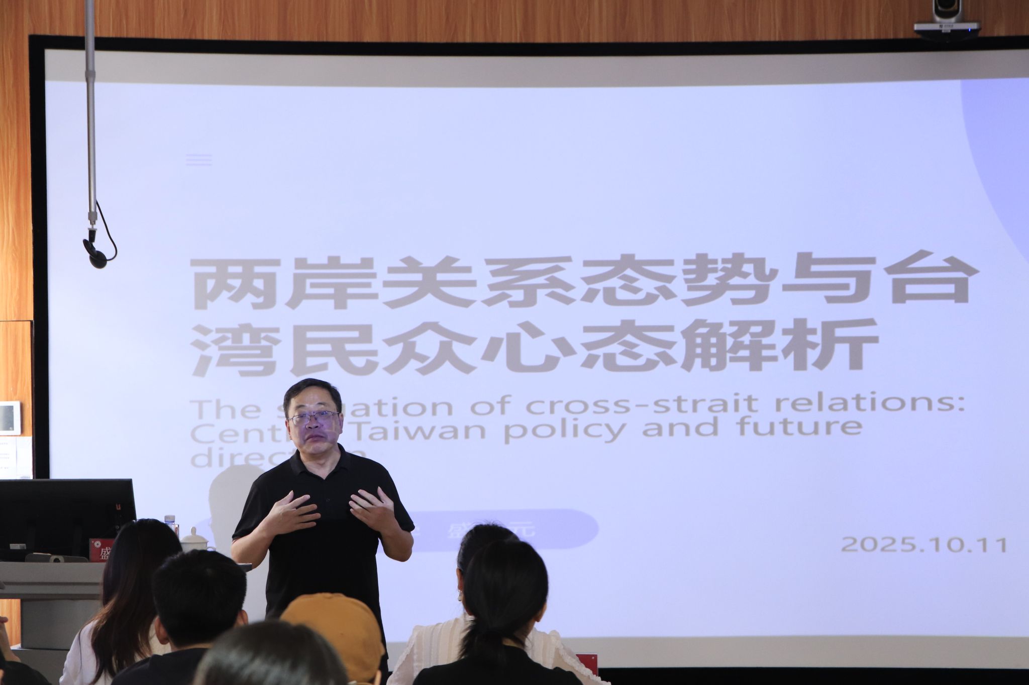 10月11日上午,yl23411永利两岸一家亲研究院与yl23411永利集团联合邀请上海交通大学台湾研究中心主任、国际与公共事务学院长聘教授盛九元来我校作《当前两岸关系态势及岛内社会心态》主题讲座。此次讲座由yl23411永利集团党...