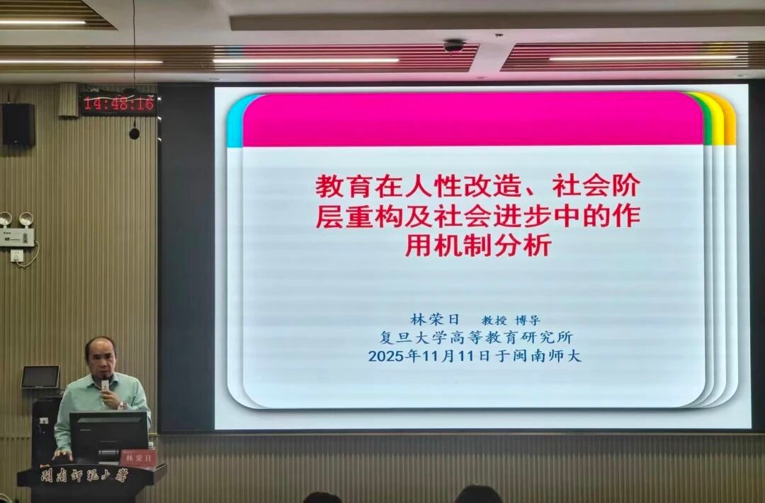 学海无涯|林荣日教授深入阐释教育的社会功能与时代价值为深化教育学科学术内涵建设,拓展师生理论研究视野,11月11日下午,我院邀请林荣日教授于东区梯一报告厅作了题为“教育在人性改造、社会阶层重构及社会进步中的作用机...