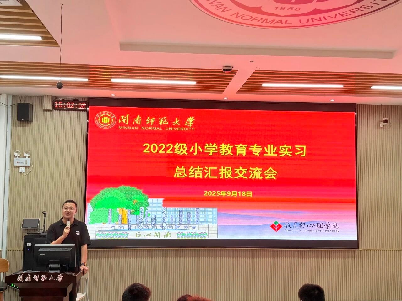 为全面总结教育实习成果,推动实践经验交流,充分展现我院小学教育专业学生的实习成效与精神风貌,9月18日下午,我院2022级小学教育专业实习总结会议在yl23411永利东门梯教一顺利召开。副院长刘磊、初等教育系全体教师,以及2022级小学教育专业全体学生参加总结大会。会议由初等教育系副主任陈国仕主持。