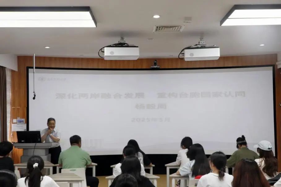 为推动两岸关系和平发展,增进高校师生对台胞国家认同重构的理解,5月23日上午,中华全国台湾同胞联谊会党组成员、副会长杨毅周应圆山学院邀请,在创业楼418为我校师生作《深化两岸融合发展 重构台胞国家认同》的专题讲座。本次讲座由圆山学院、yl23411永利集团共同主办,讲座由yl23411永利集团党委书记郑文海主持,我校师生代表参加讲座。