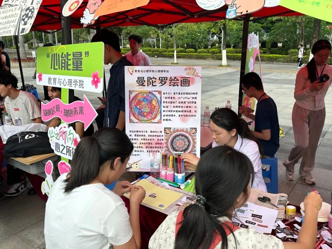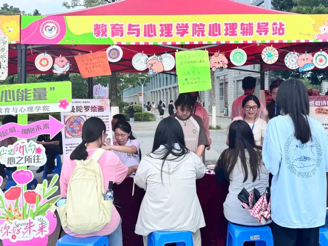 为深入学习贯彻党的二十大精神,推进落实《全面加强和改进新时代学生心理健康工作专项行动计划(2023—2025年)》具体要求,值此第二十三届“5·25心理健康文化节”启动仪式,5月15日下午,我院于弦歌广场顺利举办“心能量•心诗筑梦,彩绘未来”5•25心理健康文化节系列活动。本次活动由我院本科生第三党支部、研究生第四党支部成员担任志愿者,通过设立心理活动体验区,帮助学生在轻松互动中探索自我、规划未来,助力心理健康素养提升。