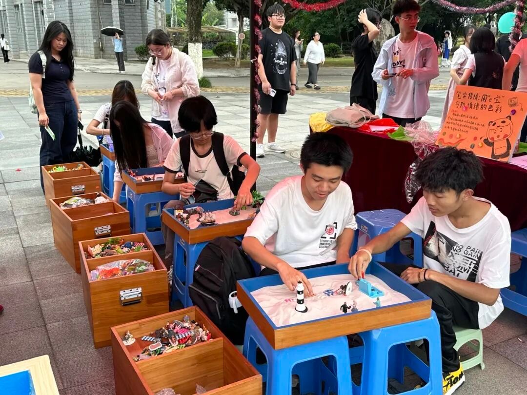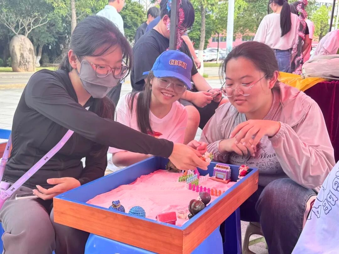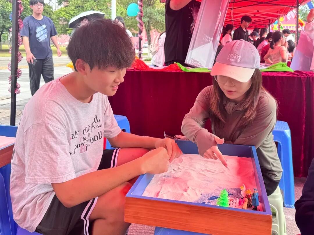 参与者通过布置沙盘微缩场景具象化职业愿景与人生规划,在志愿者们的帮助下觉察自我价值取向,激发对未来发展路径的创造性思考与内在驱动力。