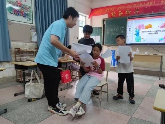 志愿者们结合乡村实际需求,开展食品安全、防溺水、应急救护等实用技能主题班会,学生在实践学习中提升自我保护本领,深化对生命安全的认知。