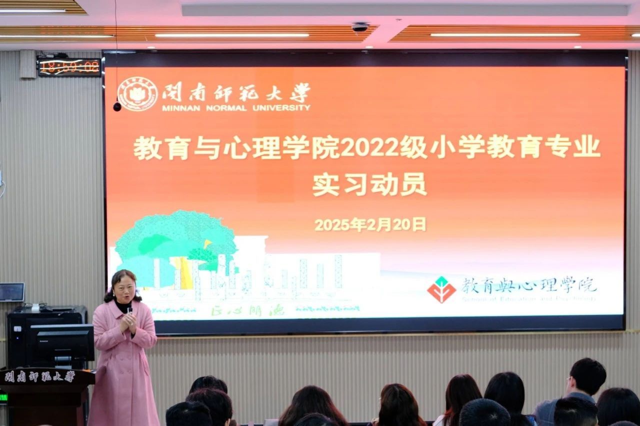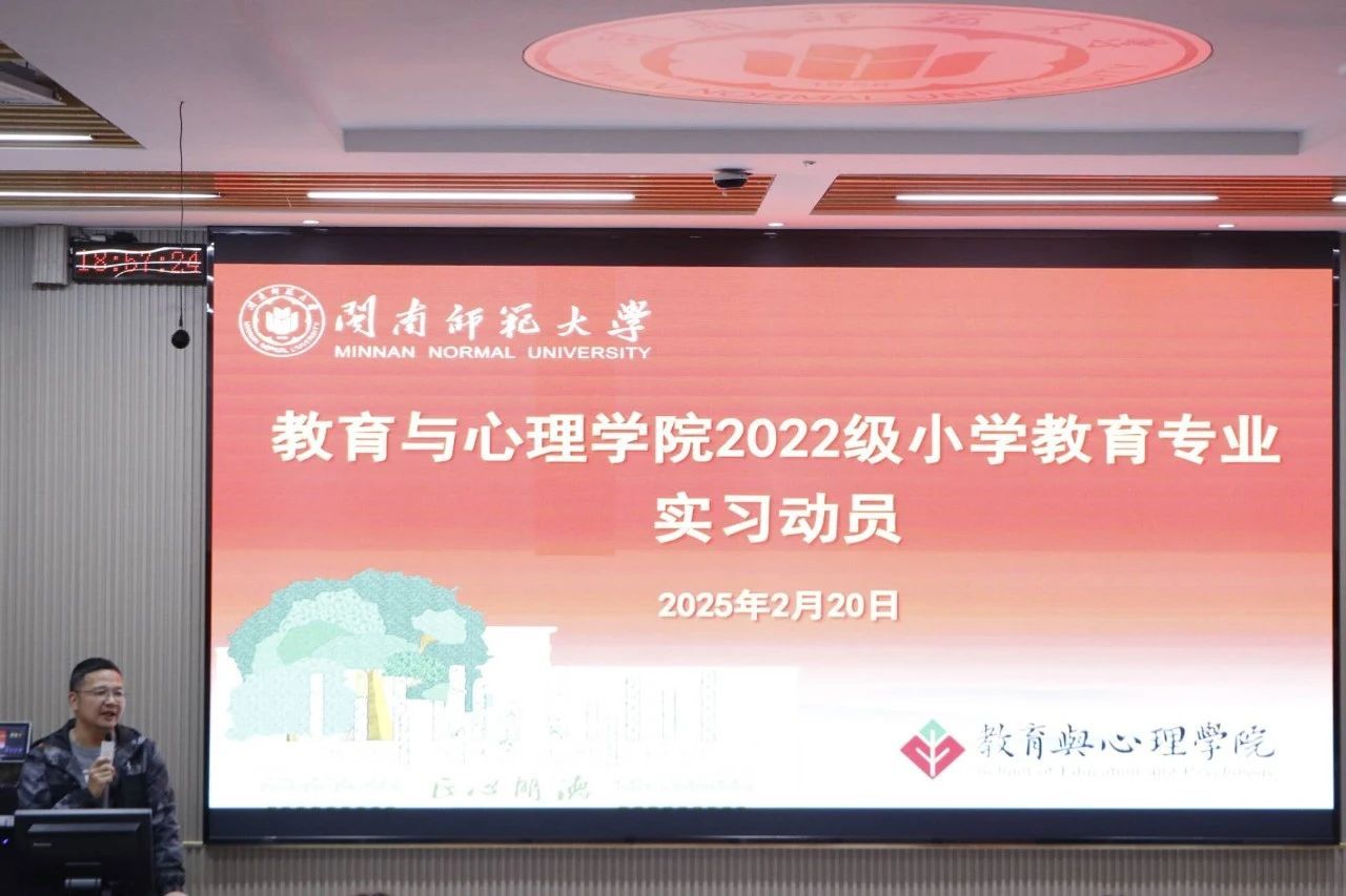 为进一步弘扬教育家精神,夯实教育报国信仰根基,锻造知行合一育人本领——让党的二十大精神在师范生培养一线落地生花,2月20日晚,我院在东门梯教一举办“锤炼师能担使命,匠心育人启新程”2022级小学教育专业学生实习动员大会。学院杨君玉副书记、刘磊副院长、初等教育系实习指导教师及2022级小学教育专业全体同学参加会议,会议由初等教育系副主任陈国仕老师主持。