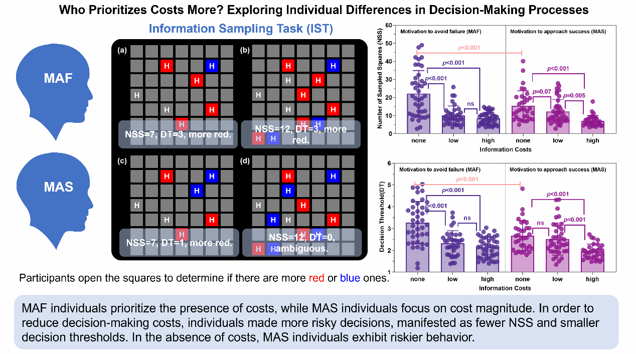 研究方向:判断与决策(不仅限于道德判断、妥协效应、信息抽样、第三方惩罚、建言采纳、亲社会行为、情绪、两难困境、信任博弈等);学习与记忆(不仅限于内隐学习、错误记忆、成就动机、目标脱离、多任务管理等)。